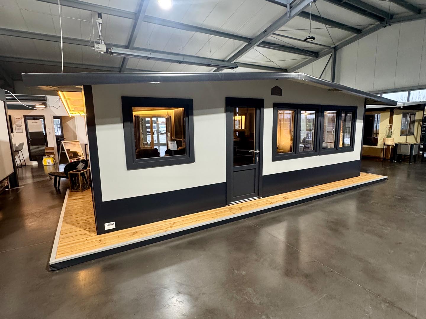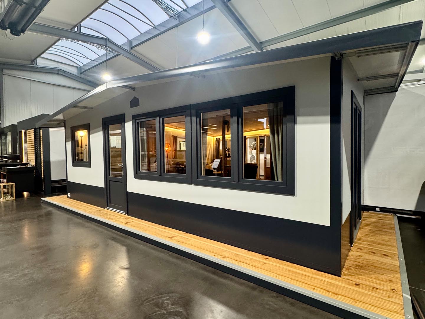 - Front: 2× Kunststofffenster 140×110 cm, doppelt verglast, Dreh/Kipp, 2-flügelig, außen anthrazit
